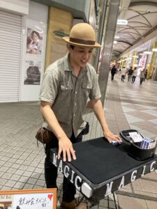 といっても、この日はご依頼がなかったため自分の名前を売るためにストリートマジックをしに行きました!